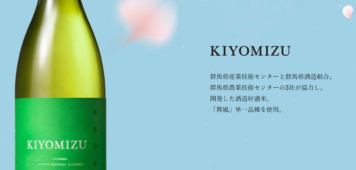 • 豊かな自然が生み出す清らかで美しい水と、厳選された群馬県産の米「舞風」が、清水屋酒造の6代にわたる技術と融合して「KIYOMIZU」が誕生しました。英字の「O」は滴を表しており、一滴一滴までこだわり抜く姿勢を象徴しています。